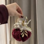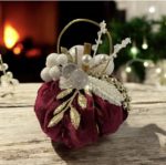 Χειροποίητη κολοκύθα-γούρι. Διακοσμητική κολοκύθα σύνθεση από βελούδο σε μπορντό χρώμα.