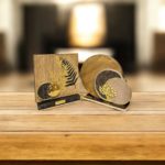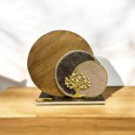 Η βάση του είναι φτιαγμένη από ποιοτικό ξύλο με μεταλλική πινακίδα, προσδίδοντας πολυτέλεια και ανθεκτικότητα. Το διακοσμητικό αυτό ταιριάζει άψογα σε κάθε εσωτερικό χώρο – σαλόνι, γραφείο, είσοδο ή επαγγελματικό χώρο – χαρίζοντας κομψότητα και θετική αύρα.