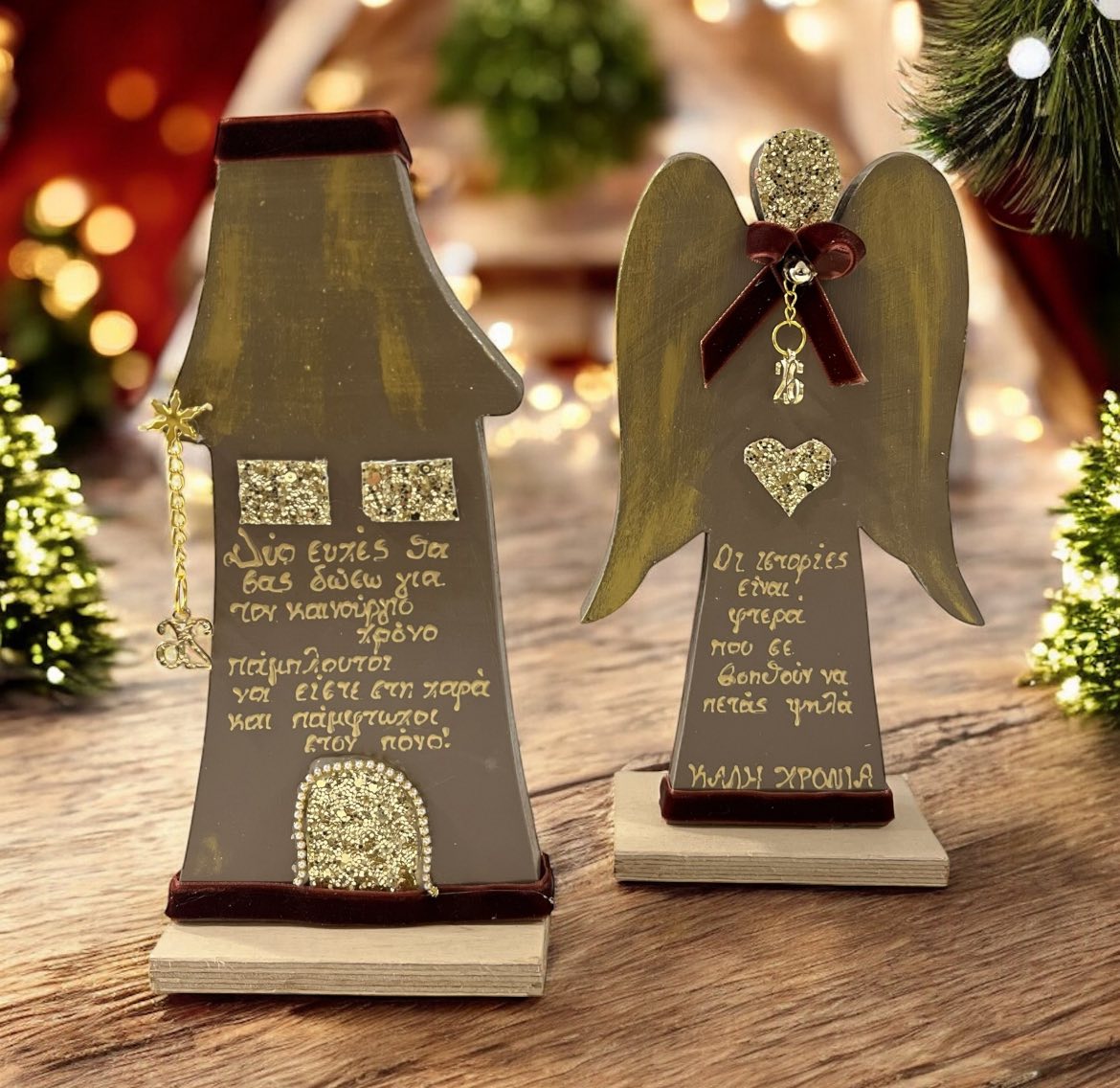 Διακοσμητικό ξύλινο σπίτι γούρι με ευχή