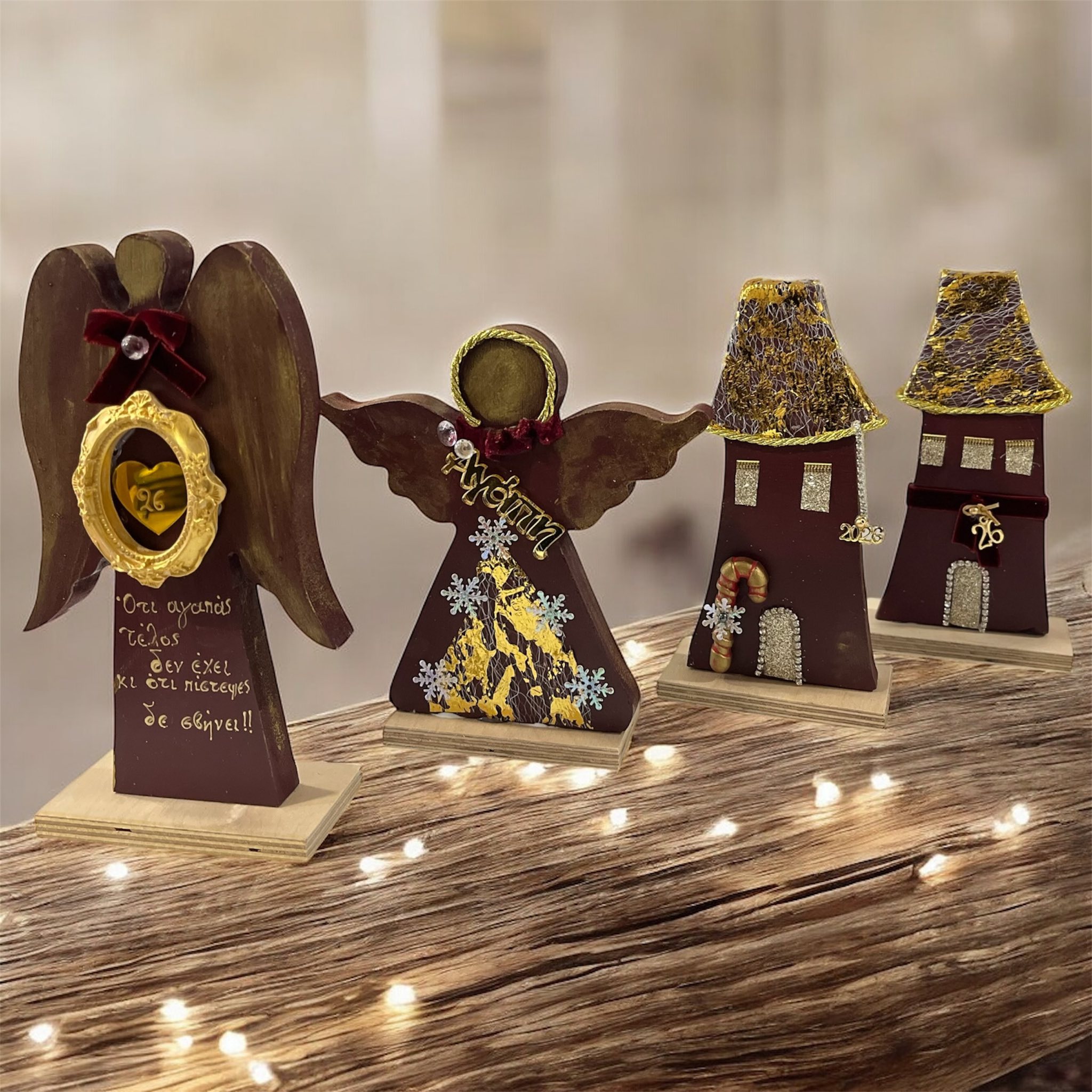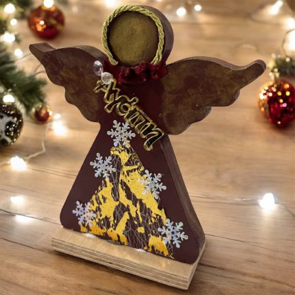 Ανακαλύψτε την κομψότητα αυτής της μοναδικής χειροποίητης φιγούρας αγγέλου, φτιαγμένης με αγάπη και προσοχή στη λεπτομέρεια. Αυτό το διακοσμητικό αγγελάκι είναι η ιδανική προσθήκη για τη χριστουγεννιάτικη σας διακόσμηση ή για να δώσει μια πινελιά γαλήνης στον χώρο σας όλο τον χρόνο.