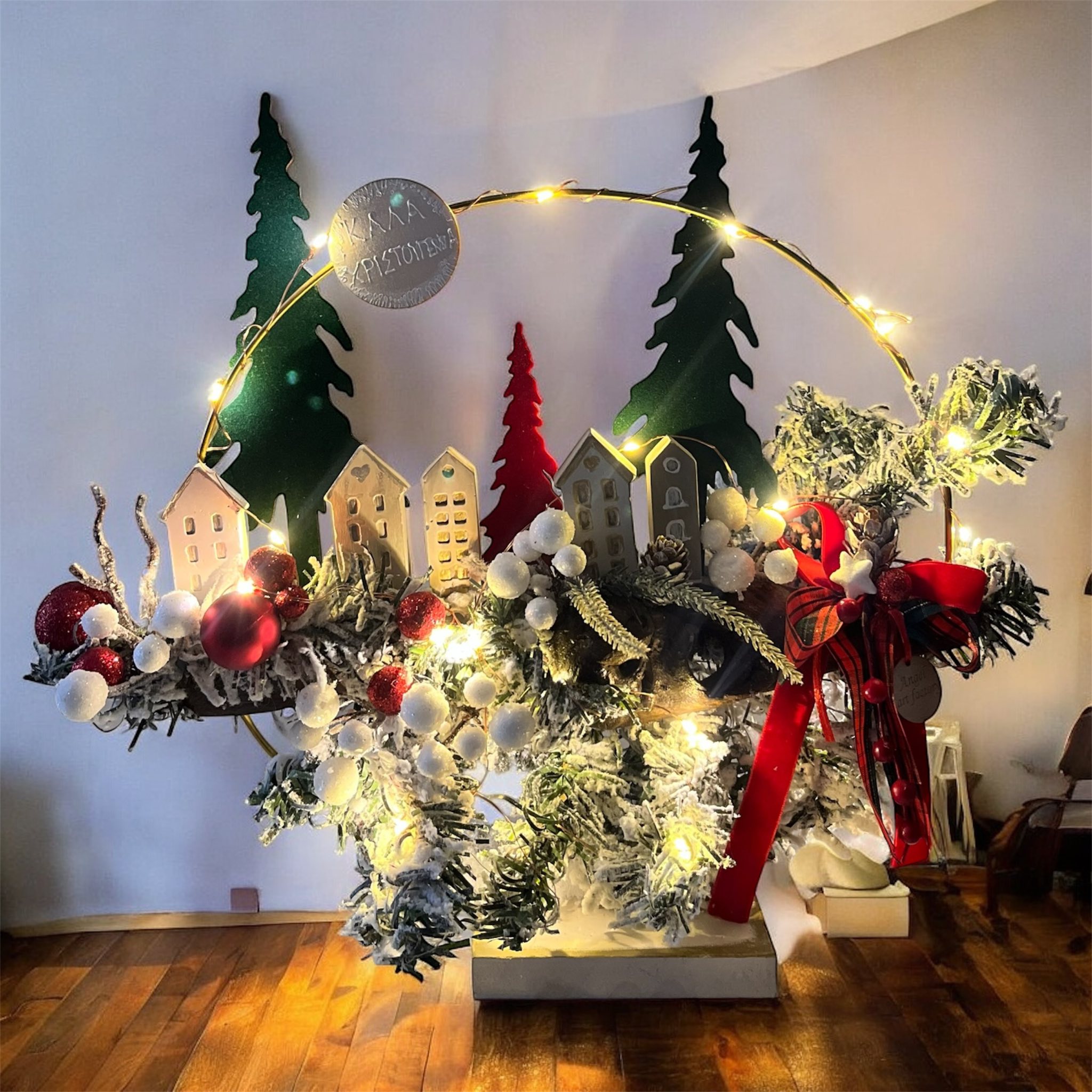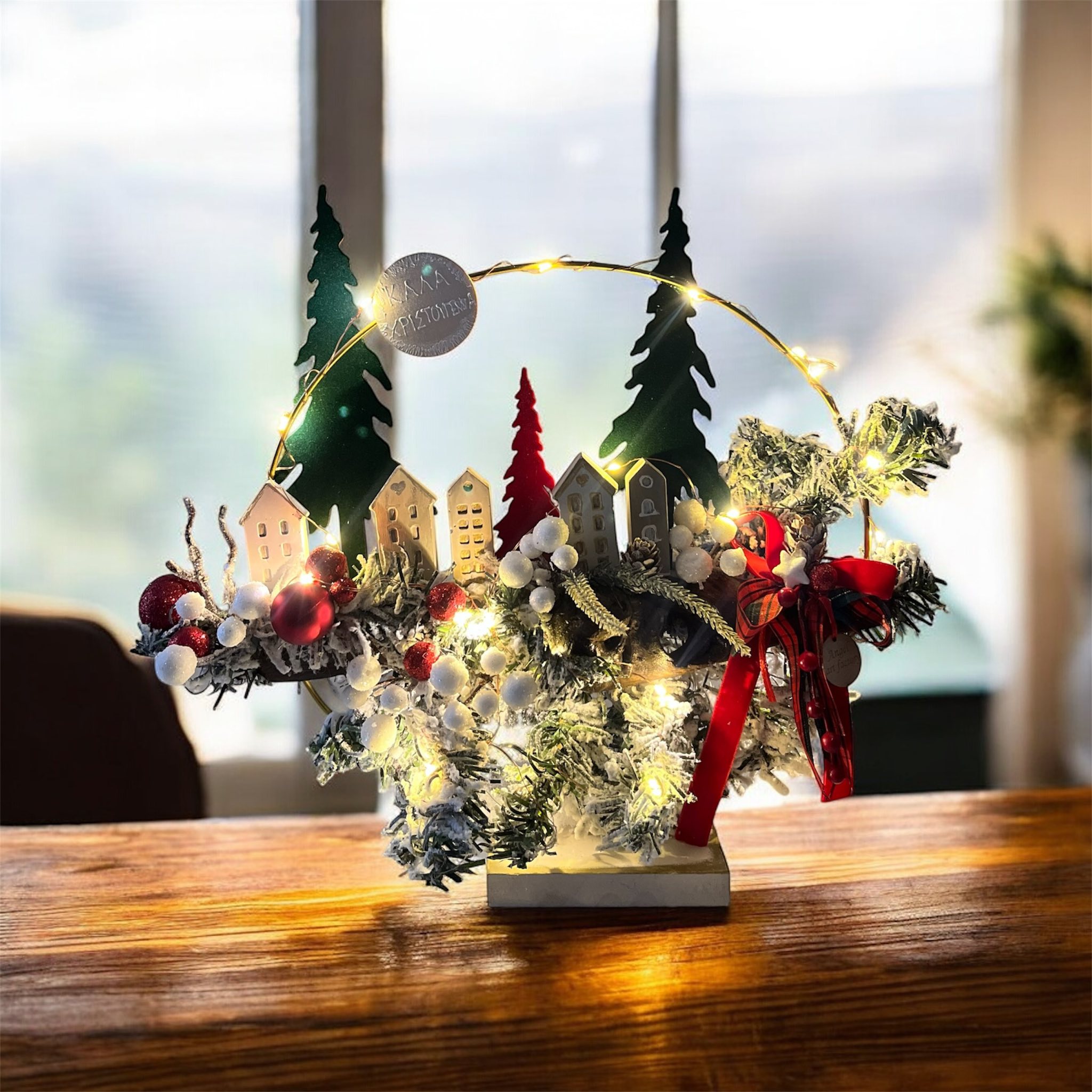 Φωτιζόμενο χριστουγεννιάτικο επιτραπέζιο στεφάνι-σύνθεση