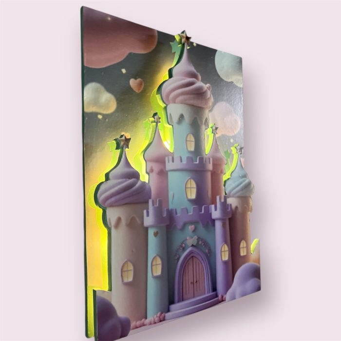 Κάδρο φωτιστικό 3D κάστρο σε χοντρό ξύλο 40εκ