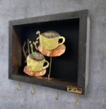Προσθέστε μια ζεστή και παιχνιδιάρικη πινελιά στον χώρο της καφετέριας ή του coffee shop σας με τη χειροποίητη κλειδοθήκη τοίχου “Flirt”. Το ξύλινο πλαίσιο σε σκούρες αποχρώσεις φιλοξενεί δύο καλλιτεχνικά διαμορφωμένες κούπες καφέ, ενώ η χρυσή λέξη “Flirt” προσδίδει μοντέρνο και χαλαρό ύφος. Ένα διακοσμητικό που συνδυάζει πρακτικότητα και αισθητική, ιδανικό για επαγγελματικούς χώρους εστίασης.