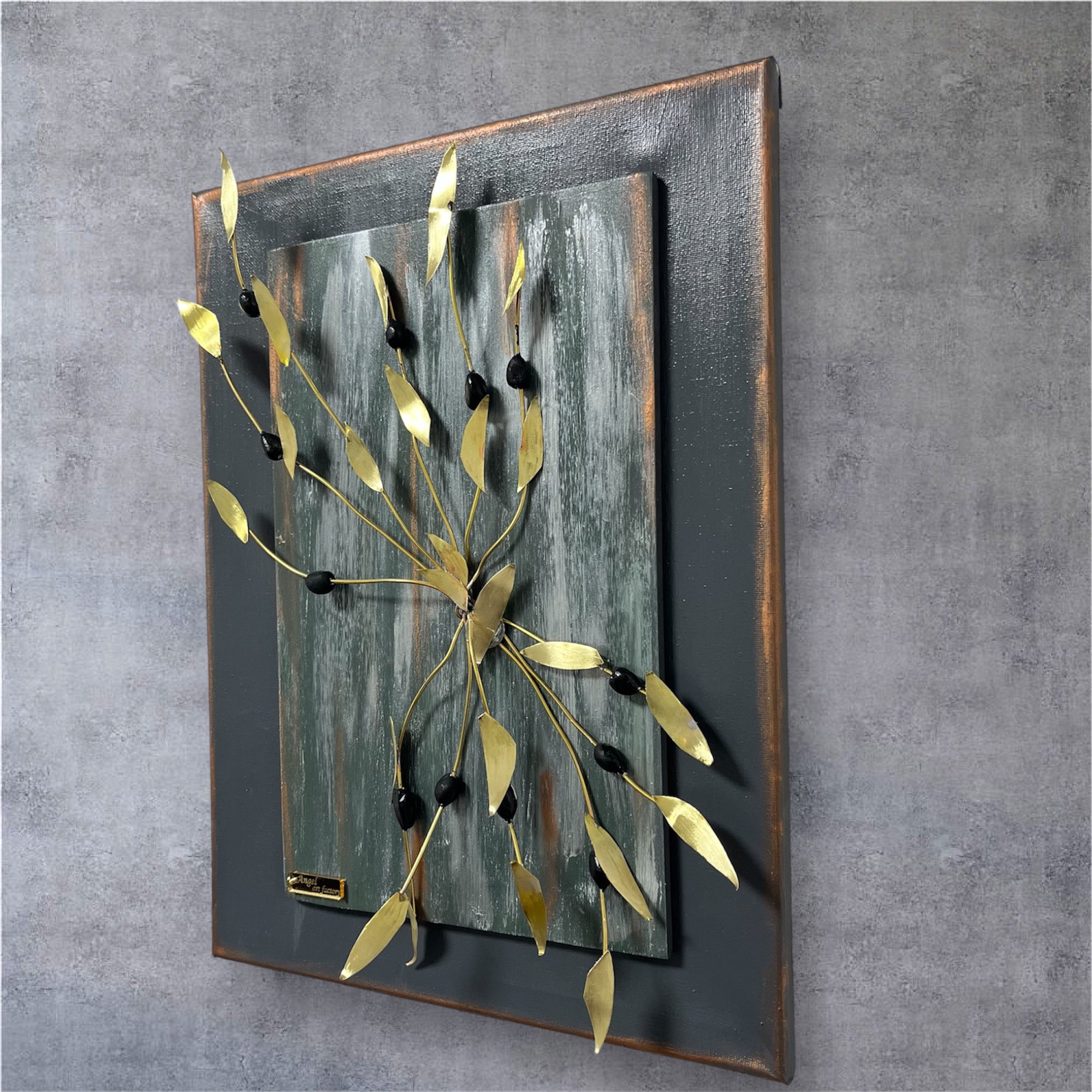 Ανακαλύψτε την μοναδική δημιουργία μας που αποτυπώνει την ομορφιά της ελιάς, το αγαπημένο θέμα που μυρίζει Ελλάδα! Αυτή η εντυπωσιακή τέχνη συνδυάζει διάφορα υλικά, δημιουργώντας μια αρμονική συνύπαρξη που θα ενθουσιάσει κάθε λάτρη της τέχνης.