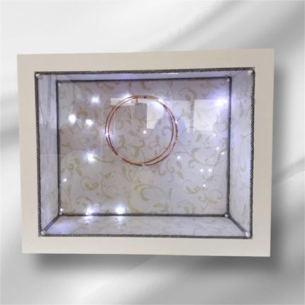 Ανακαλύψτε την απόλυτη τέχνη της παρουσίασης με την ξύλινη χειροποίητη στεφανοθήκη μας, η οποία διαθέτει ενσωματωμένο φωτισμό. Αυτή η μοναδική στεφανοθήκη δεν είναι απλώς μία βιτρίνα, αλλά ένα πραγματικό έργο τέχνης που θα αναδείξει τα πολύτιμα αντικείμενα του γάμου σας, προσφέροντάς τους τη θέση που τους αξίζει.