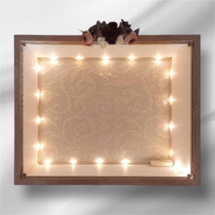 Ανακαλύψτε την Ξύλινη Χειροποίητη Στεφανοθήκη με Φωτισμό, ένα μοναδικό έργο τέχνης που θα προσφέρει στα αντικείμενα του γάμου σας την αναγκαία προσοχή και τη θέση που τους αξίζει. Φτιαγμένη με φροντίδα και μεράκι, αυτή η στεφανοθήκη δεν είναι μόνο πρακτική, αλλά και κομψή, προσθέτοντας μια αίσθηση πολυτέλειας στον χώρο σας.