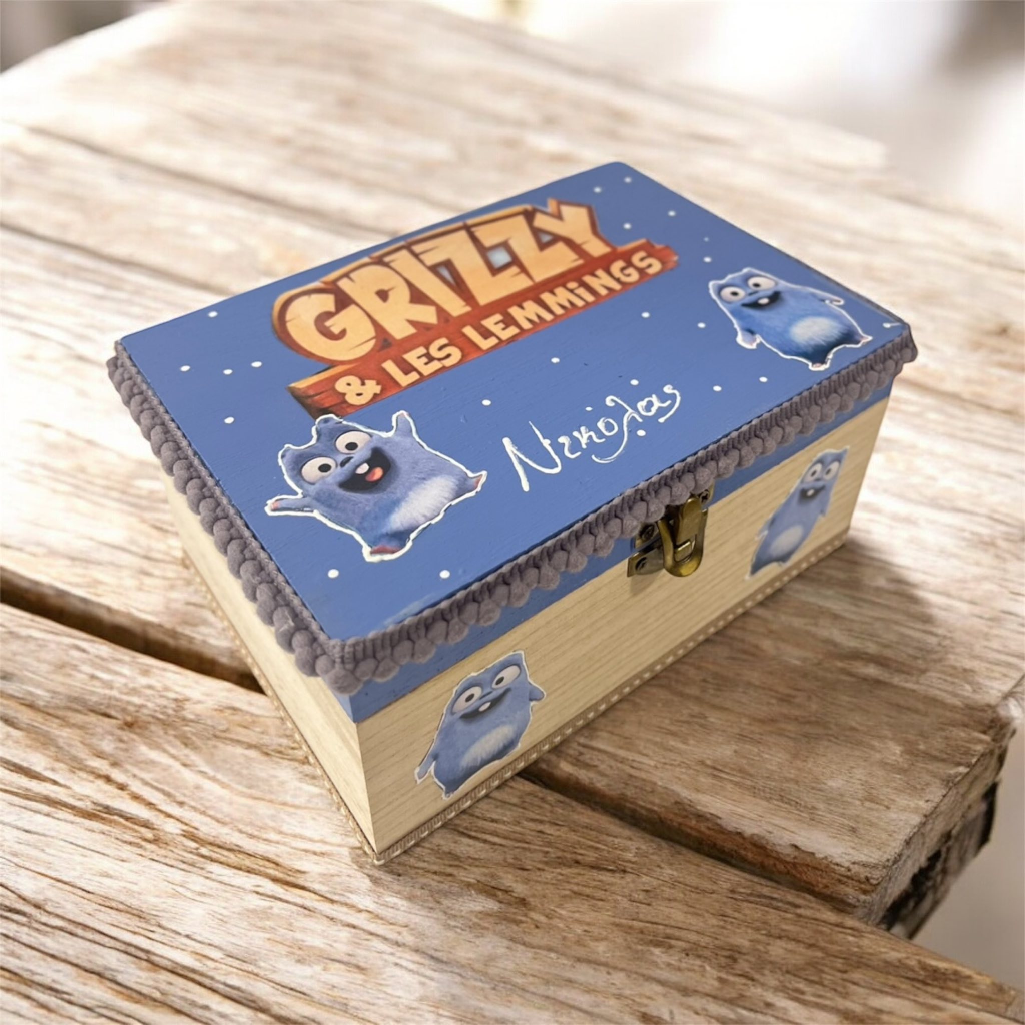 Ξύλινο αποθηκευτικό μπαουλάκι grizzy and the lemmings